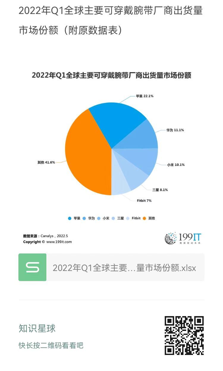 - 2022年Q1全球主要可穿戴腕带厂商出货量及增长率(附原数据表)