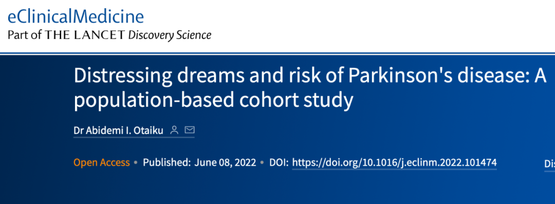 3.Dr Abidemi I. Otaiku, Distressing dreams and risk of Parkinson’s disease: A population-based cohort study,eClinicalMedicine,2022,101474