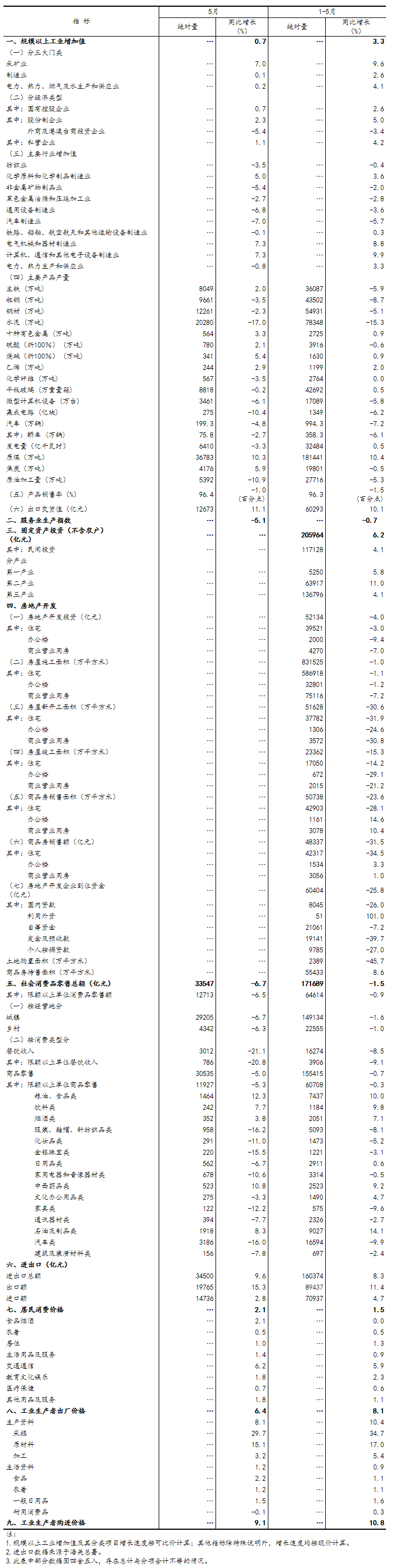 (1)规模以上工业增加值及其分类项目增长速度按可比价计算,为实际增长速度;其他指标除特殊说明外,均按现价计算,为名义增长速度。