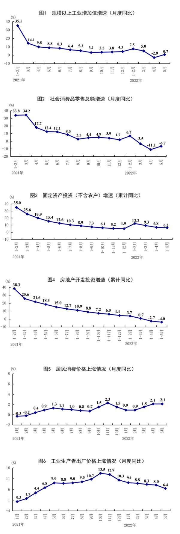 总的来看,5月份我国经济逐步克服疫情不利影响,主要指标边际改善,经济呈现恢复向好势头。但也要看到,国际环境更趋复杂严峻,国内经济恢复仍面临不少困难挑战。下阶段,要坚持以习近平新时代中国特色社会主义思想为指导,全面贯彻落实党中央、国务院决策部署,高效统筹疫情防控和经济社会发展,加大宏观政策调节力度,全力推动稳增长一揽子政策措施落地见效,着力稳定宏观经济大盘,着力保障和改善民生,促进国民经济持续恢复。