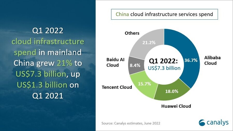 - 阿里云在2022年第一季度继续领跑云基础设施服务市场,占总支出的36.7%,同比增长12%。阿里云一直是中国市场的领导者,并且还在继续增长。其海外扩张正在按计划进行,阿里巴巴宣布其在韩国的数据中心于2022年3月30日正式运营。