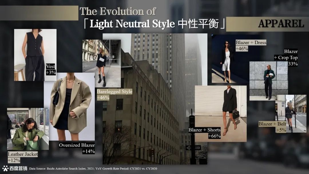 在这三个大类中,汇聚了消费者对于时装搭配的个性化追求,我们通过数据深挖总结出了以下趋势: