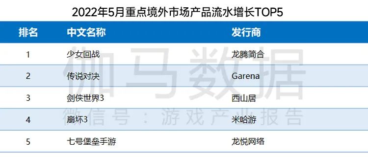 注:上述为2022年5月上线的移动游戏,并依据产品上线后30日国内全平台流水状况进行排名,上线不足30日的产品根据其目前流水状况推算首月流水。数据来源于伽马数据移动游戏流水测算,仅供参考。