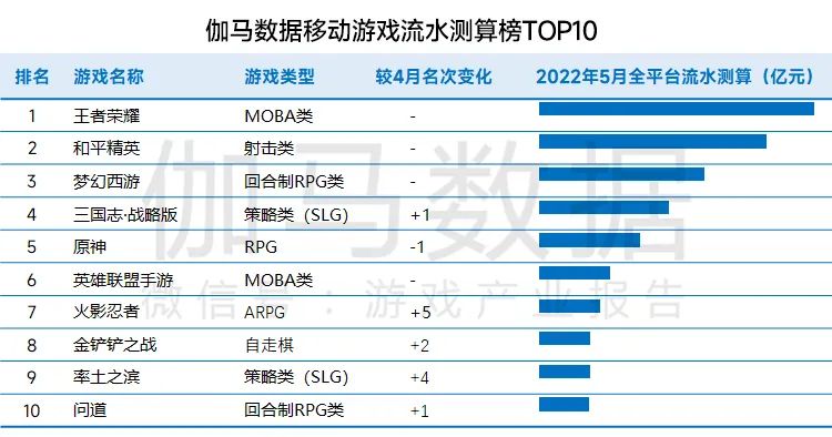移动游戏流水测算榜TOP10:游戏类型数量保持不变 且7款产品未变