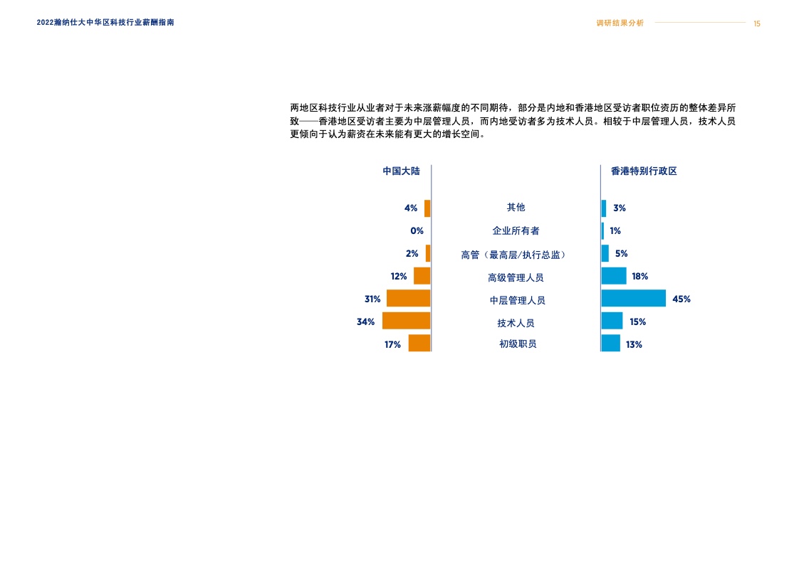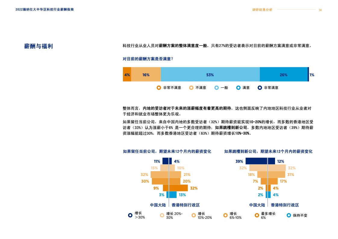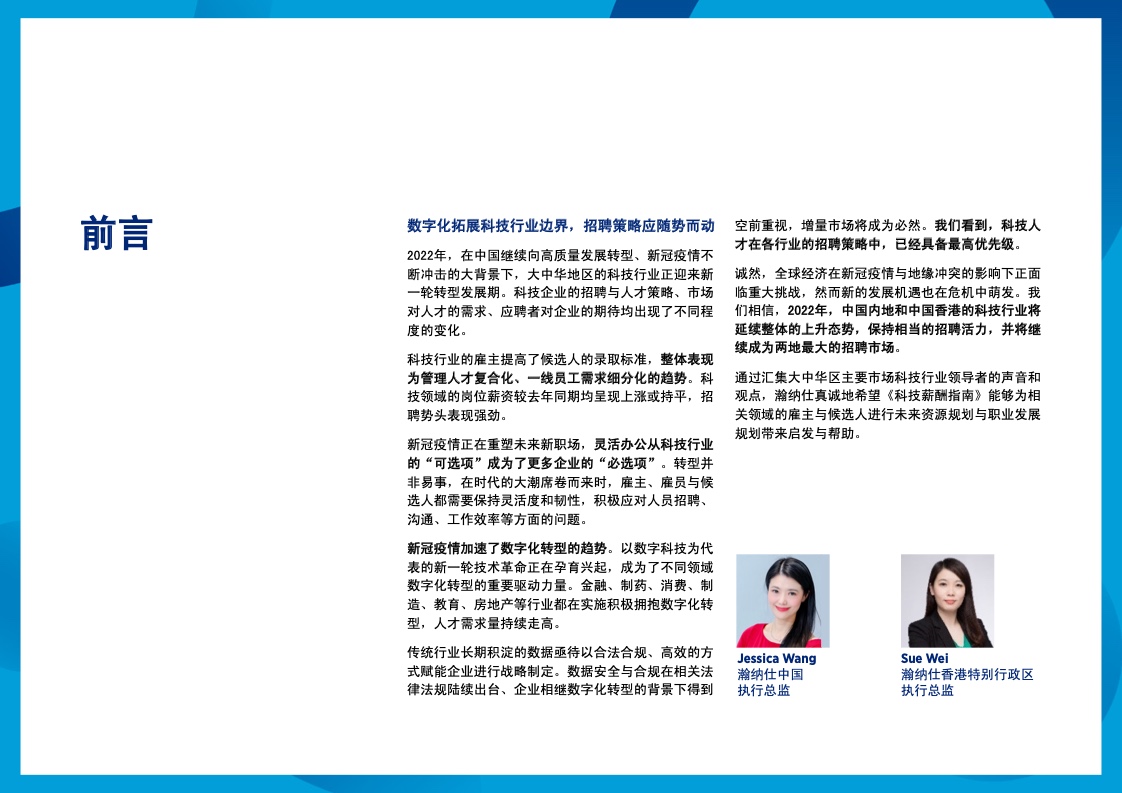指南在2022年3月发布的《2022瀚纳仕亚洲薪酬指南》(下称《亚洲薪酬指南》)基础上,聚焦中国内地和中国香港地区,基于两地1000多位科技行业职场人士的调研与业内高管的访谈完成。