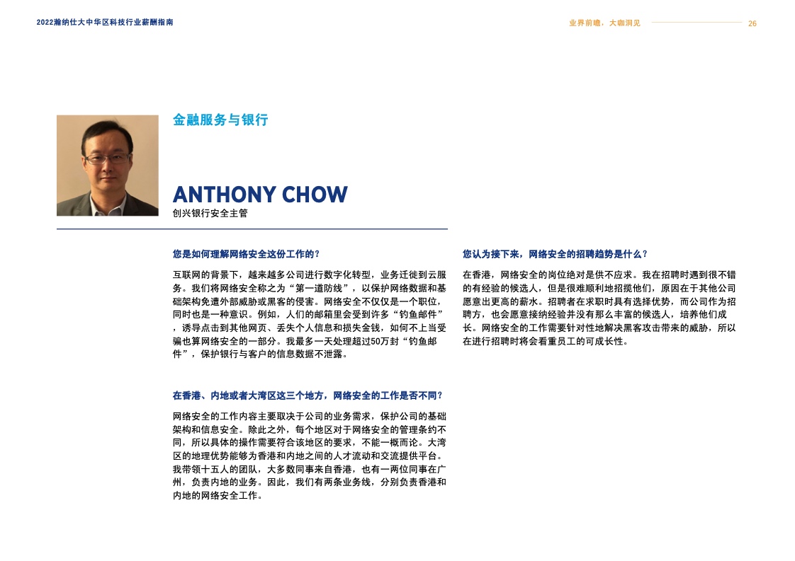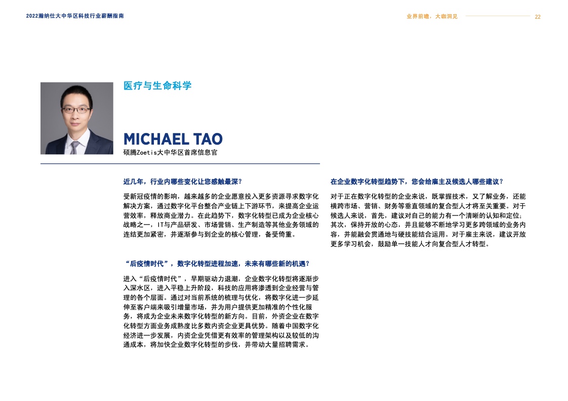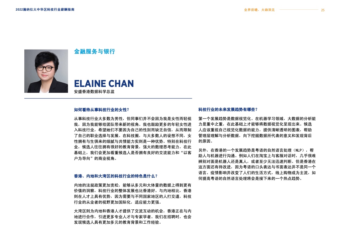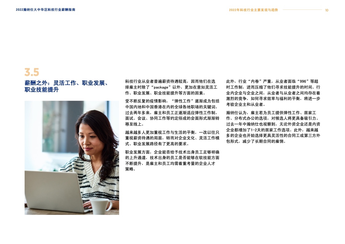指南在2022年3月发布的《2022瀚纳仕亚洲薪酬指南》(下称《亚洲薪酬指南》)基础上,聚焦中国内地和中国香港地区,基于两地1000多位科技行业职场人士的调研与业内高管的访谈完成。