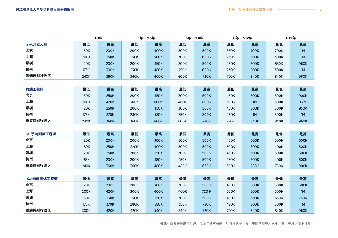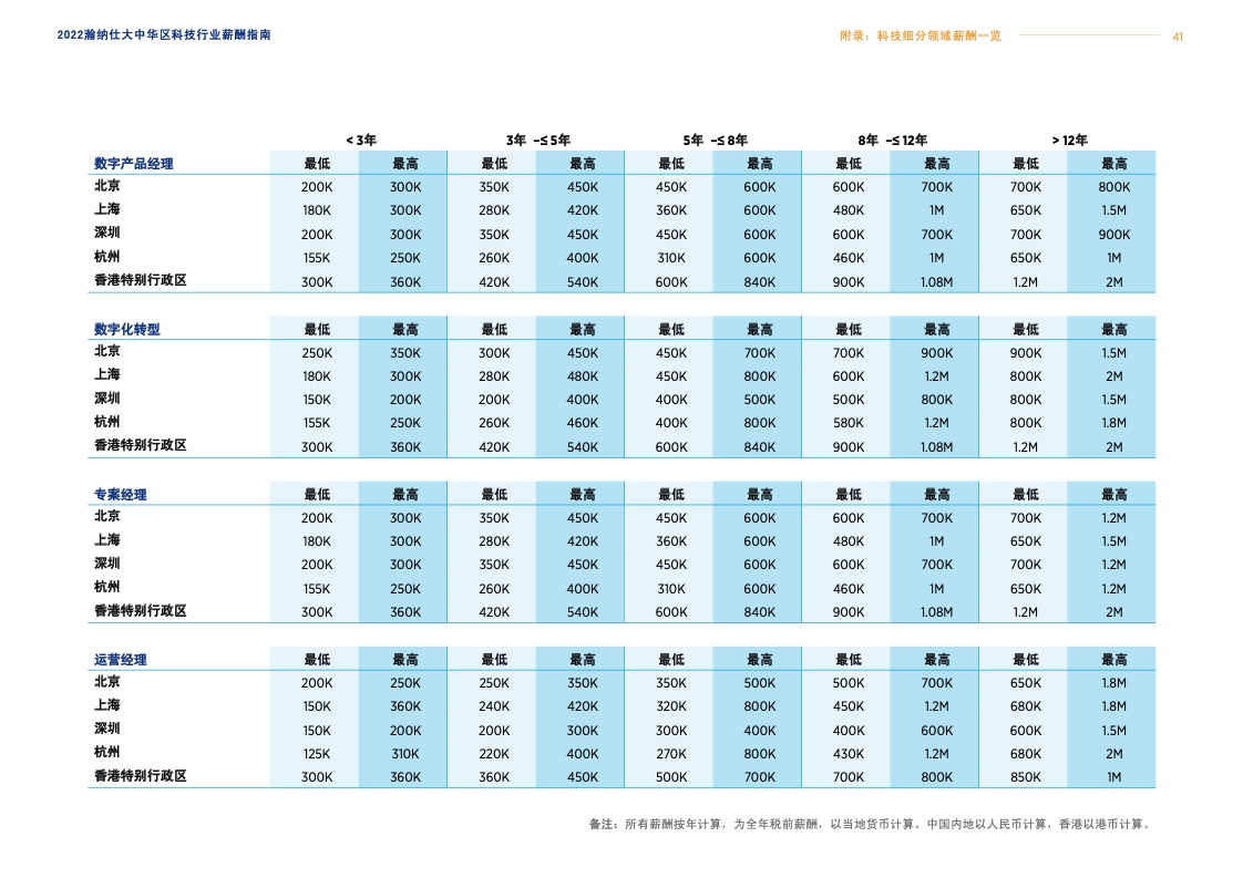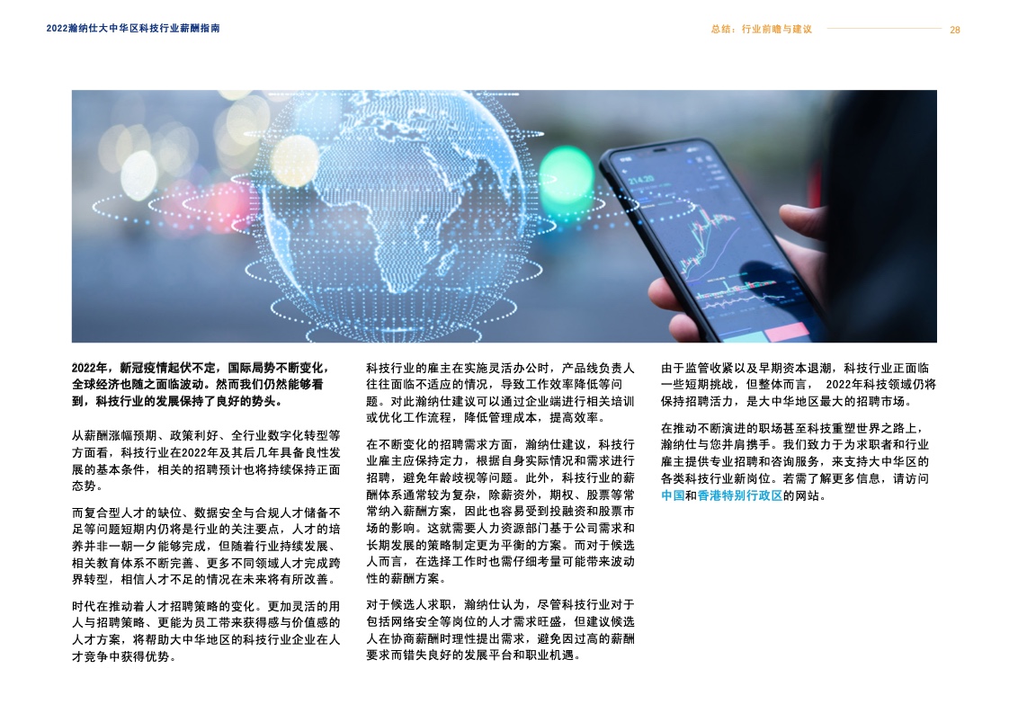 从薪酬涨幅预期、政策利好、全行业数字化转型等方面看,中国内地和中国香港的科技行业在2022年及其后几年具备良性发展的基本条件,相关的招聘预计也将持续保持正面态势。