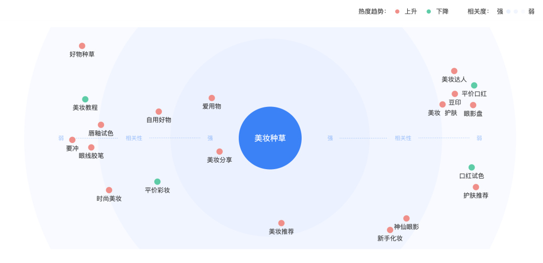 商家也可在巨量算数官网中使用算数指数产品挖掘与美妆商品有关的热度词,分析热词相关联的词云网络,通过词云筛选从消费者关心的美妆品类热点、需求的痛点和购买的买点出发,做好美妆货品卖点营销。