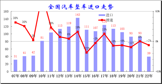 在 2013-2015 年世界经济低迷情况下的剧烈下滑后,2016-2017 年进口增速稍有企稳改善,2018 年 – 2020 年以来持续下滑,2022 年稍有企稳。2022 年 1-5 月开始的回升态势被疫情影响。目前的月度进口量维持在月均 8 万台左右水平。