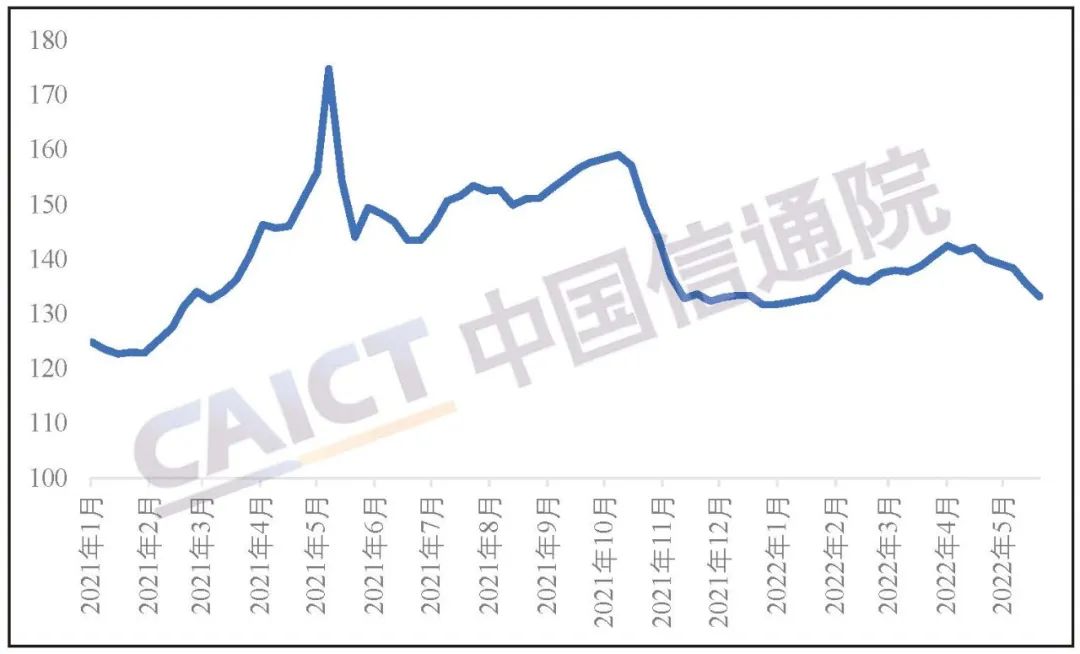 钢材价格持续下降。5月以来,钢材价格呈下降趋势。5月末,国内钢材价格指数为133.2点,环比下降6.8点,同比下降10.9点,降幅为7.6%。