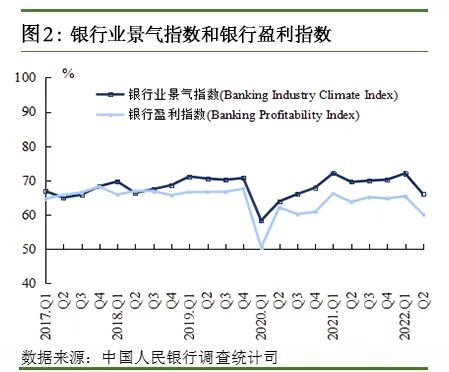 11. 银行盈利指数:反映银行家对银行盈利情况判断的扩散指数。该指数的计算方法是在全部接受调查的银行家中,先分别计算认为本行本季 “增盈(减亏)” 与“持平”的占比,再分别赋予权重 1 和 0.5 后求和得出。