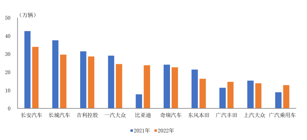 中国汽车工业协会:2022年1-5月前十家SUV生产企业销售情况简析 据中国汽车工业统计分析,2022年1-5月,销量排名前十位的SUV生产企业共销售220.4万辆,占SUV销售总量的57.2%。 在销量排名前十位的SUV生产企业中,与上年同期相比,比亚迪销量增速依然显著,广汽乘用车和广汽丰田也呈快速增长,其他企业呈不同程度下降。 更多阅读:中国汽车工业协会:2023年1-4月前十位SUV生产企业销售情况简析中国汽车工业协会:2022年1月前十位SUV生产企业销售情况简析中国汽车工业协会:2022年1-10月前十家SUV生产企业销售情况简析中国汽车工业协会:2021年1-2月前十家SUV生产企业销售情况简析中国汽车工业协会:2023年1-2月前十家SUV生产企业销售情况简析中国汽车工业协会:2022年3月前十位轿车品牌销量排名中国汽车工业协会:2021年5月汽车工业运行情况简述中国汽车工业协会:2023年1-2月我国汽车商品出口金额前十国情况简析中国汽车工业协会:2022年1-7月前十家SUV生产企业销售情况简析中国汽车流通协会:大部分车型3年保值率仍超50%乘联会:5月的SUV市场零售达到13% SUV市场为何恢复高增长中国汽车流通协会:2024年10月MPV车型保值率领跑 SUV超轿车位居第二广汽丰田:2025年3月广汽丰田销量达66066台 同比增长19.3%理想汽车:2025年3月理想汽车交付新车36674辆 同比增长26.5%奥迪:2024年全球销量167.1万辆,同比下滑11.8%