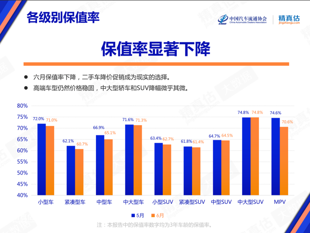 各级别车型保值率都出现下滑,二手车商为市场复苏切实让利。高端车型价格“降不动”,则是需求端的真实反映,高品质车型和性能车型仍然不缺少买家。