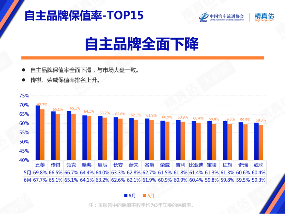 2022年7月,中国汽车流通协会和精真估联合发布了《2022年6月中国汽车保值率研究报告》。通过保值率研究旨在反映该品牌的产品力、认知度、美誉度等综合实力,对未来开展回购、置换、租赁、金融、新车定价参考等相关业务提供重要数据参考,从而降低业务风险,提升经营效率。