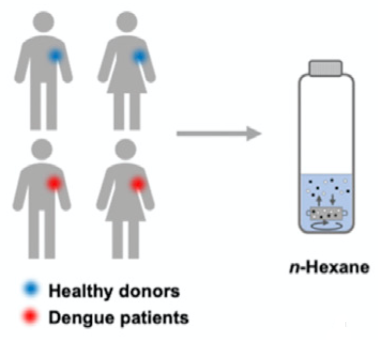 为了进一步证实人类也能产生苯乙酮,研究人员又招募了一批登革热患者和健康志愿者,并收集了他们胳肢窝的挥发物。