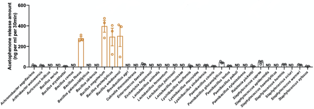 至此,引诱蚊子的化合物算是找到了,不过,这个物质究竟是哪里来的呢?要知道,哺乳动物的基因组中可不存在合成苯乙酮的酶。这种情况下,矛头只能指向人体微生物了。