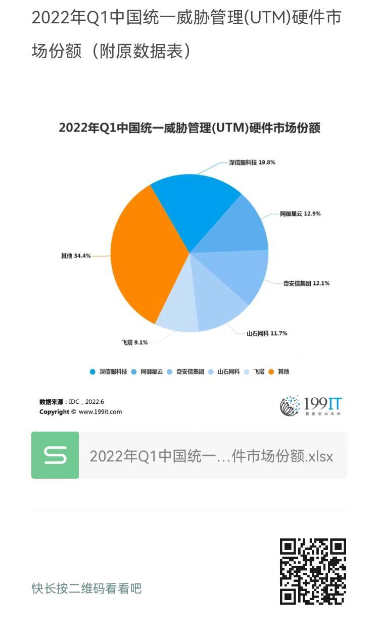 2022年Q1中国统一威胁管理(UTM)硬件市场份额(附原数据表) ​​​​