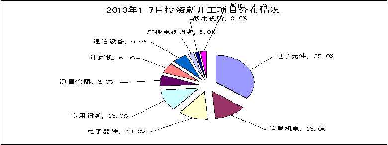 1-7月,电子信息产业新开工项目4910个,同比增长8.3%,增速比1-6月高3.9个百分点。其中,广播电视、计算机、视听设备、集成电路、半导体分立器件、光伏、信息材料等领域新开工项目数量均出现下滑,而电子元件、通信终端设备的新开工项目增长较多。