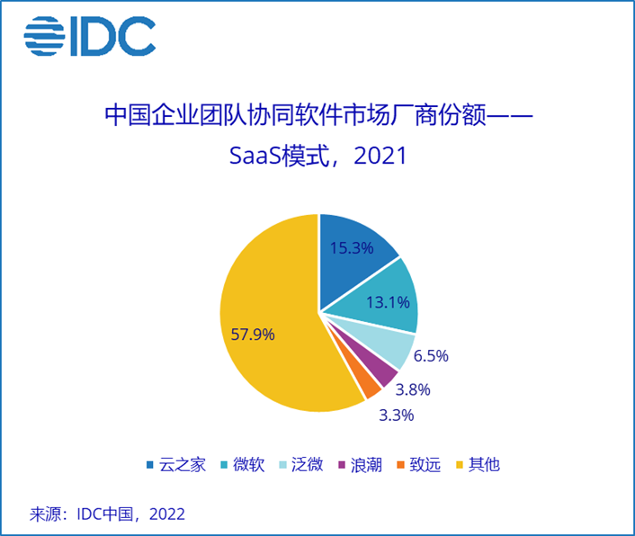 IDC 中国企业软件市场研究经理王楠表示:“在全球的企业团队协同软件市场中,SaaS 模式占比远高于本地部署模式,2021 年全球 SaaS 模式的企业团队协同软件占总体市场份额的 80%;而同期中国 SaaS 产品的占比还不到 40%。其中原因,既有免费 SaaS 产品带来的市场影响,也有大型政企客户过去对使用 SaaS 产品存在顾虑。疫情的出现,使大型企业开始尝试或考虑使用 SaaS;同时,近年来过去一些免费的 SaaS 产品供应商,也开始布局商业化市场,为忠实客户、高质量客户提供付费产品选择,提供更高的产品能力和服务质量。综合来看,未来几年内,中国企业团队协同 SaaS 市场将保持较高的增长态势。”