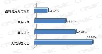 据CNNIC网调数据显示,65.80%的被调查者在个人微信中填写真实所在地区,46.61%的被调查者使用真实姓名,35.34%的被调查者使用真实头像,仅有15.14%的微信用户在个人微信中不使用真实资料。从填写真实资料情况来看,互联网时代的“二微产物”——微信与微博之间存在很大的用户行为差异性。微博,是一个开放性的社会化信息共享平台,一个email账号即可生成一个专属于自我的微博平台,一键关注便可获取对方的信息,无限制浏览任一微博用户的页面,微博用户之间的地域选择范围也更为广阔,与微博的开放性、低门槛性对应的便是微博用户之间的弱关系链。微信,逾六成的真实地区、逾四成的真实姓名、逾三成的真实头像,一层层圈定人际关系圈,用户之间更多地受强关系牵连。