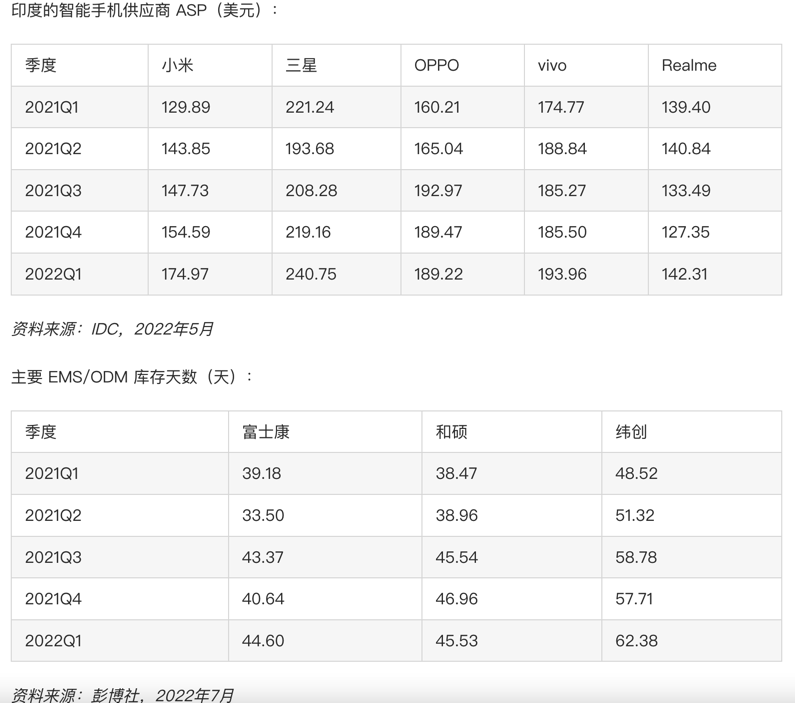 鉴于高库存水平,Bloomberg Intelligence 分析师表示,手机 EMS/ODM 行业将在未来几个季度面临去库存压力。Strategy Analytics 高级分析师 Rajeev Nair 告诉《经济时报》,他预计印度市场会出现大幅折扣以清算股票。