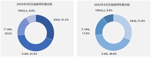 2022年6月二手车交易车辆使用年限分析