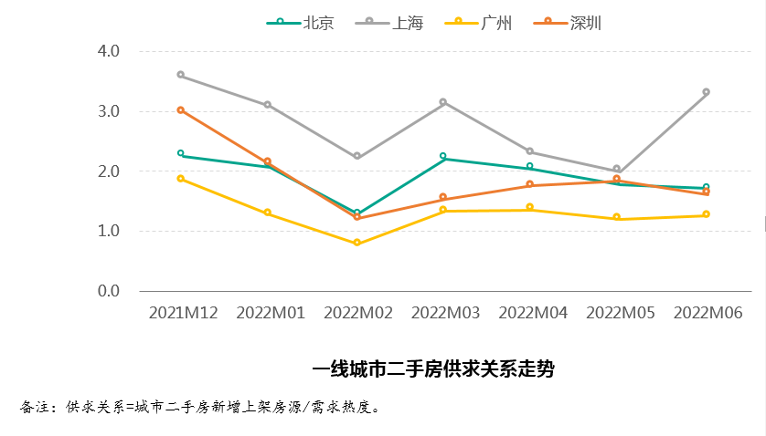 备注:供求关系=城市二手房新增上架房源/需求热度。