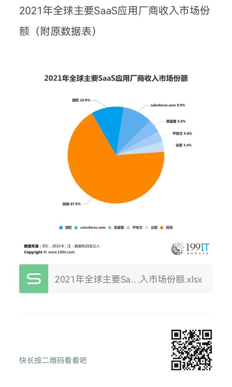 2021年全球主要SaaS应用厂商收入市场份额(附原数据表) 更多阅读:2023年美国公司平均使用SaaS应用数量(附原数据表) 2021上半年中国企业级应用软件(EA)SaaS各子市场份额(附原数据表) 2022年中国主要城轨云SaaS厂商市场份额(附原数据表) 云安全联盟:2022年SaaS安全调查报告酷量集团:2022年中国VS美国SaaS市场洞察亚马逊云科技Marketplace(中国区)现已支持SaaS产品阿里云:2017年中国SaaS用户研究报告2017年SaaS产业趋势早期SaaS定价必须关注的7件事Service VS Software:魔学院SaaS的发展模式探讨广告分析公司Moat获得1200万美元投资 将推出SaaS精准广告评估平台SEG:2025年SaaS并购报告之买家视角Dealroom:2023年英国SaaS报告GP Bullhound:2024年欧洲SaaS报告机器学习对 SaaS 行业的影响