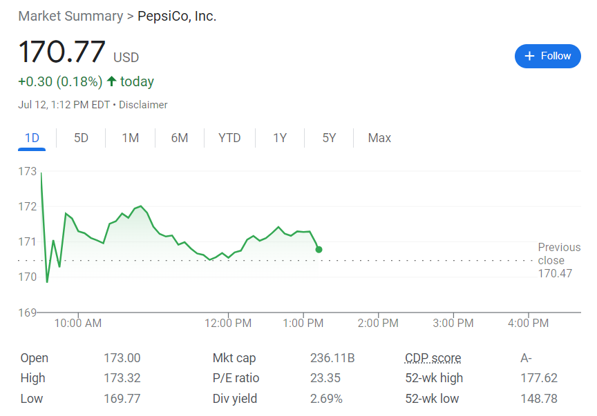 周二午盘,百事公司小幅上涨,年初至今百事累计跌幅1.3%,跑赢同期超过19%标准普尔500指数的跌幅。
