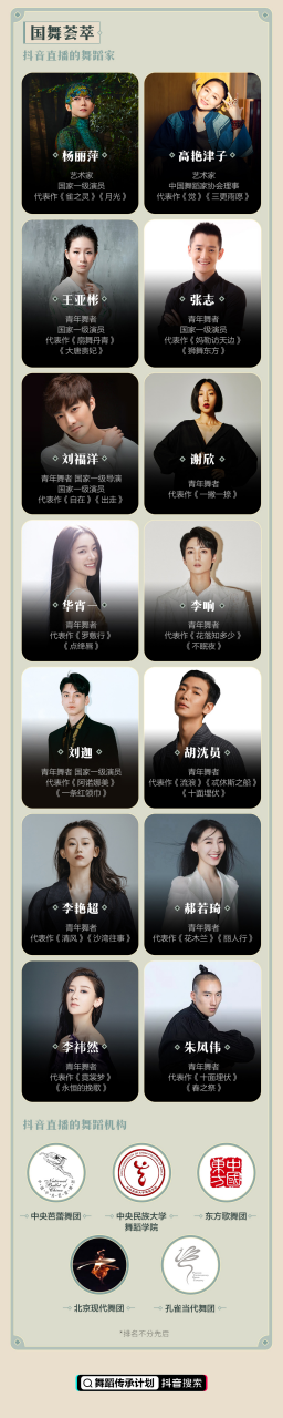 为弘扬传统文化,传承中国舞艺术,2022年6月,抖音直播发起云上舞者直播季活动,为舞者、舞团提供演出新“舞台”。同月,抖音直播联合民族传统文化传承项目办公室共同发起“舞蹈传承计划”线上活动,该活动由黄豆豆、冯双白、罗斌、杨丽萍等舞蹈家担任“召集人”,抖音用户分享舞蹈视频即可参加,优质创作者将有机会参与线下采风学习、参演舞台演出。抖音方面表示,今后会继续用直播和短视频服务大众审美需求、促进舞蹈艺术交流。