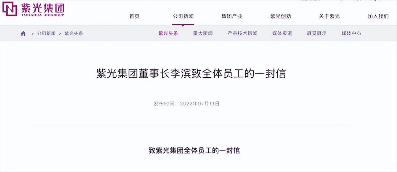 7 月 13 日,一封董事长给全体员工的信,让近期备受关注的紫光集团再次走在了聚光灯下。