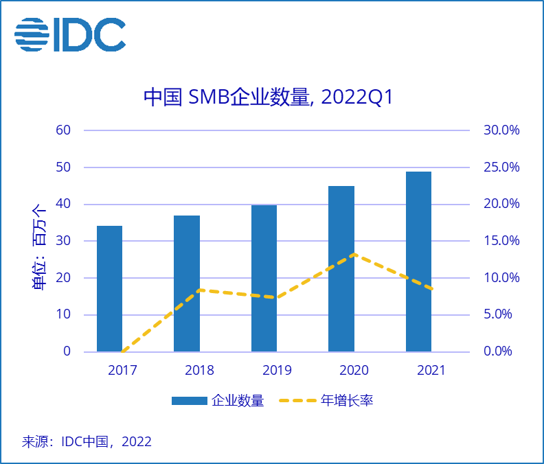 截止 2021 年,我国中小企业数量已达 4,881 万家,比上年增长 8.5%,其中专业服务和批发零售领域的中小企业数量增长最快。中小企业(不含 10 人以下企业)的行业分布并不均衡,超过 70% 的中小企业分布于专业服务业(含互联网和科技服务)、物流批发、零售和制造业,在电信、金融、教育、交通、公共事业的中小企业数量不足 10%。同时,中小企业地域分布也不均匀,主要以东南沿海地区为主,其中江浙沪包邮区的中小企业(上海、江苏,浙江)占比第一。