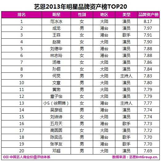如今的明星如雨后春笋,谁来代言更能带来巨大的效益?是冷艳绝伦的范冰冰,还是风靡一时的杨幂。在两者情况不相上下时,如何挑选出合适的人选,这正是广告主苦恼之处。2013年的艺恩明星品牌资产榜,结合以往三届明星品牌资产榜用数据体现艺人价值的特点,不仅能使明星的价值数据化,还能协助广告主通过量化数据分析进行代言人选择评估。以本次研究成果为基础,艺恩和宏盟集团联合开发“中国艺人商业价值评估体系”CCI(China Celebrity Index)的新产品,期望为明星代言提供量化评估工具。