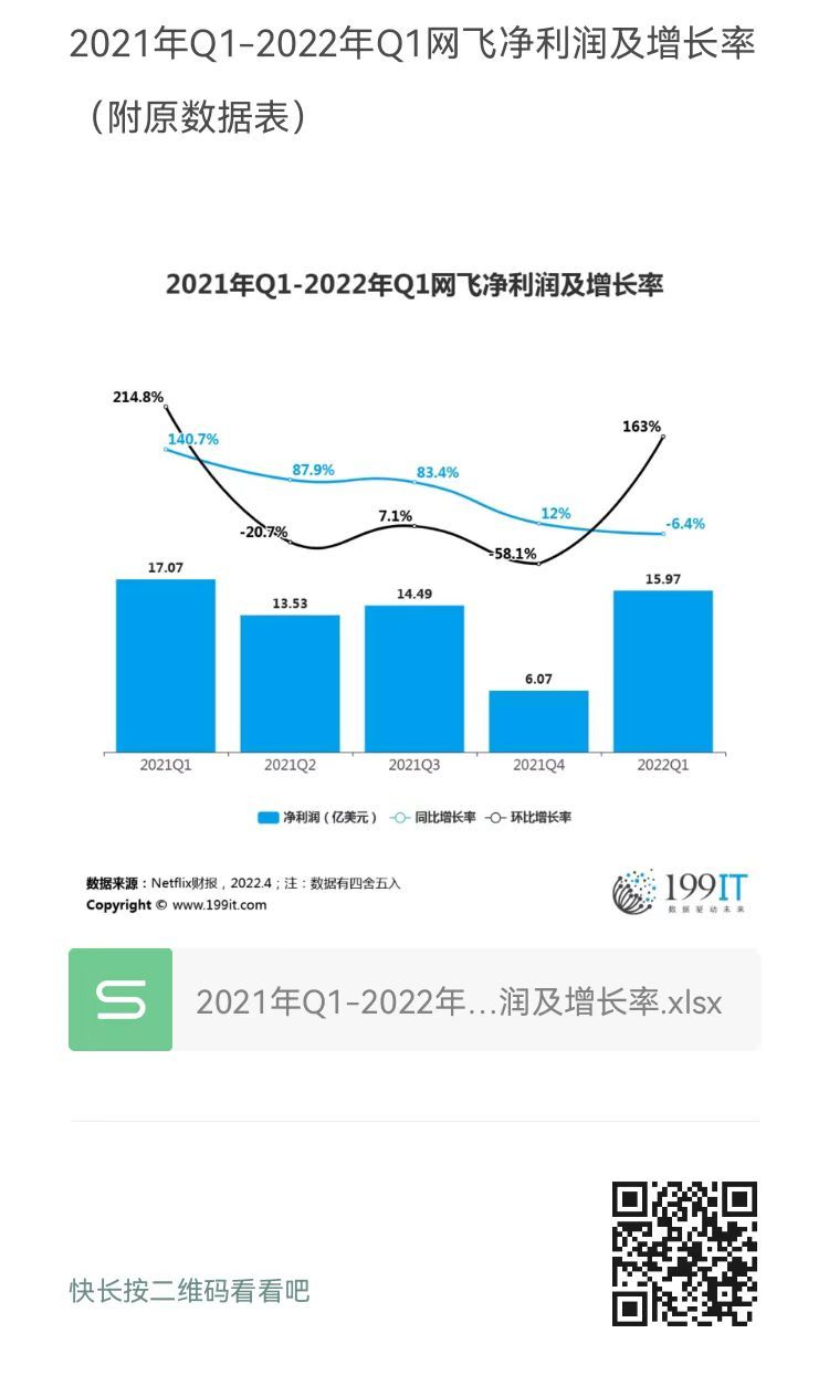 2021年Q1-2022年Q1网飞净利润及增长率(附原数据表) ​​​​