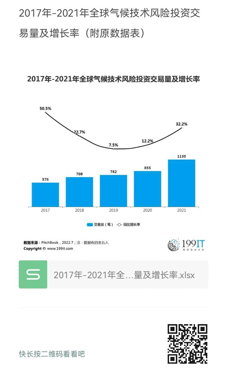 - 2017年-2021年全球气候技术风险投资交易额及增长率(附原数据表)
