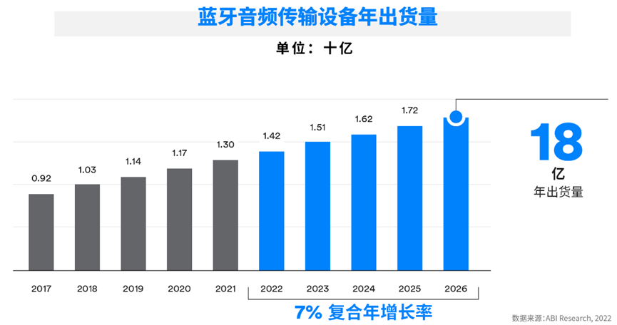 蓝牙音频传输设备年出货量(图源:ABI Research)