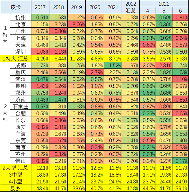 皮卡市场目前主力的销售区域还是在以中小城市和县乡市场为主,尤其是县乡市场目前的表现相对来说还是较强。22 年 6 月的中小城市市场表现尤其突出的特征。而县乡城市市场保持稳定,大城市市场目前来看市场并没有明显的突破的特征。