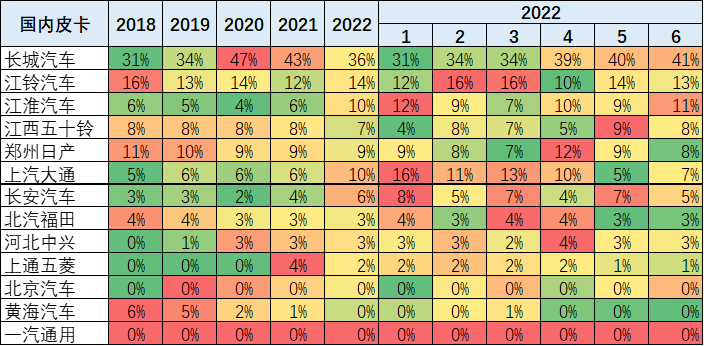 皮卡市场份额 10% 以上的厂商目前有江铃汽车和江淮汽车,包括江西五十铃和郑州日产也是很强的,这两家都是历史上相对强势的传统厂商。