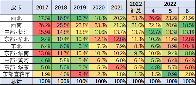 皮卡市场的区域在西北、西南为主,西部地区的皮卡需求较大。