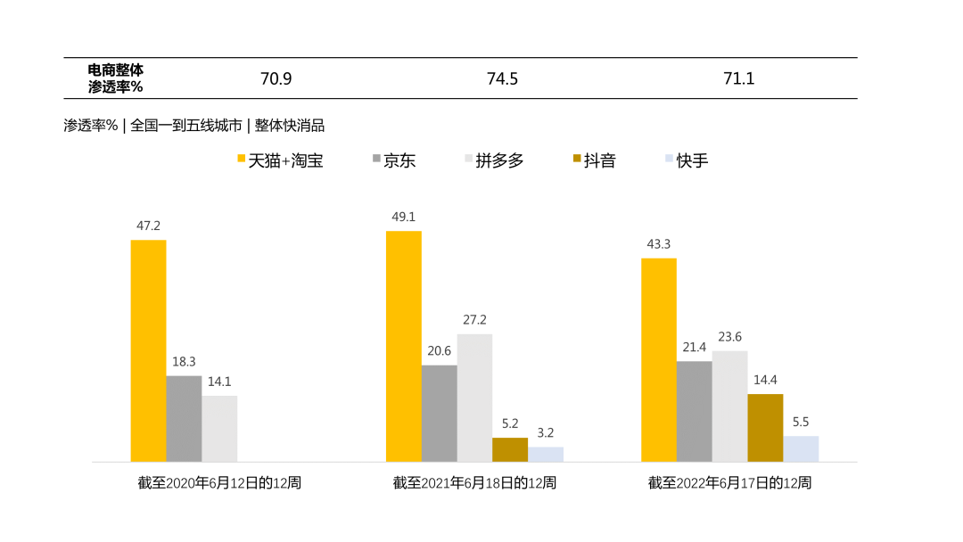 ● 与去年相比,阿里巴巴和拼多多在第二季度的渗透率都略有下降。