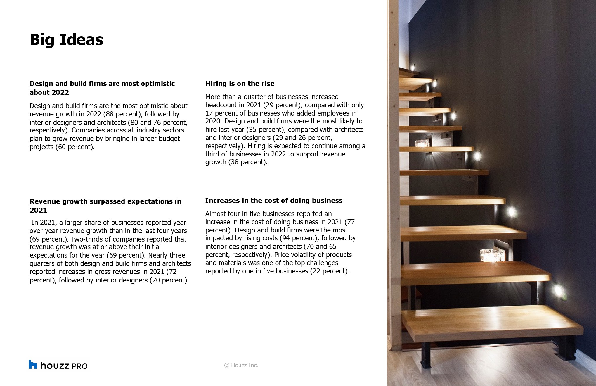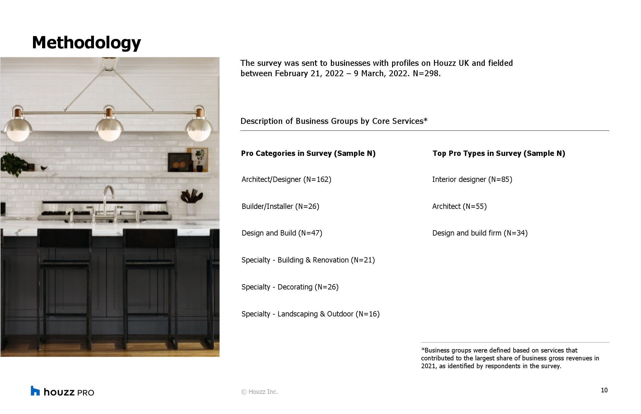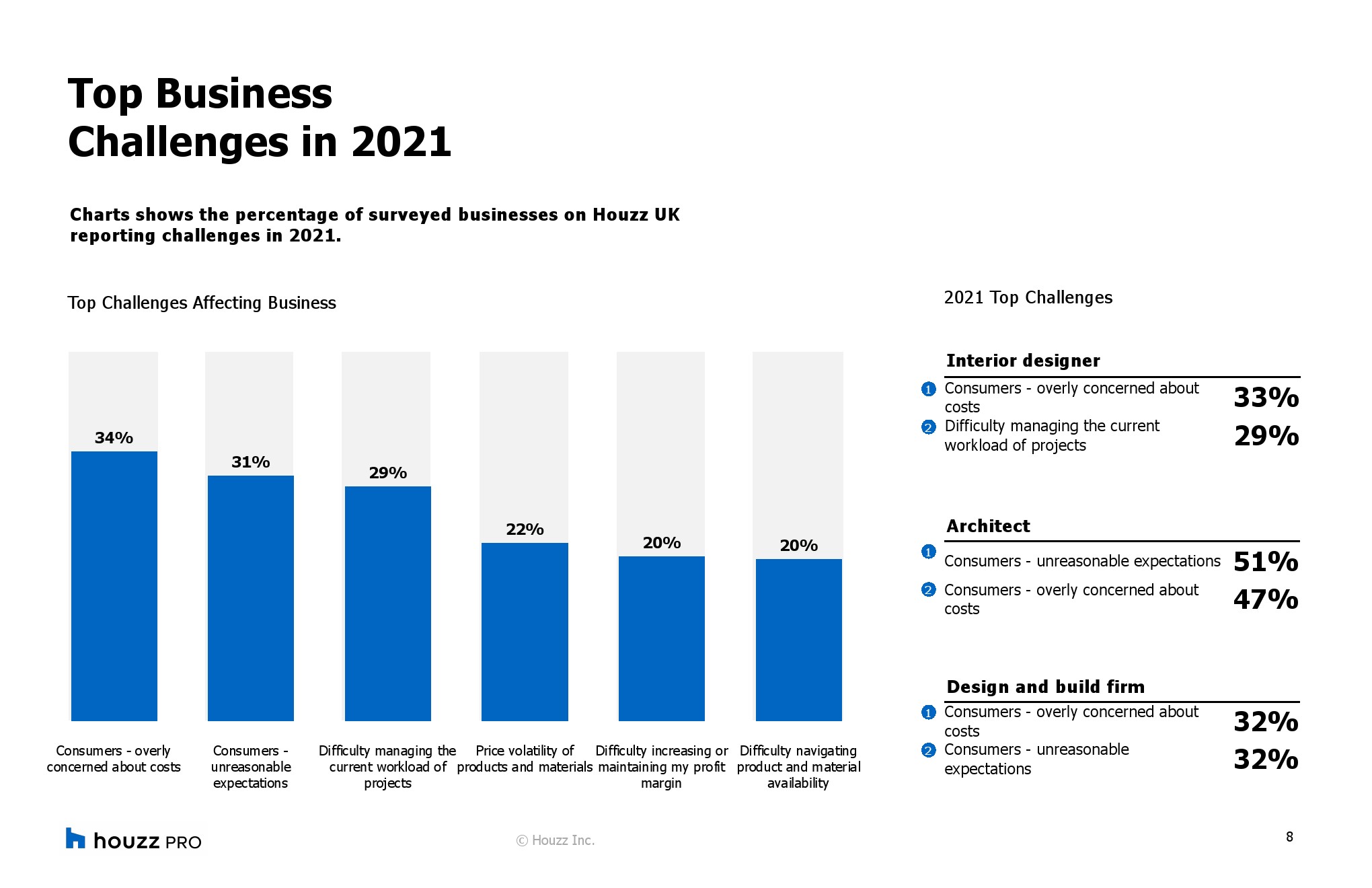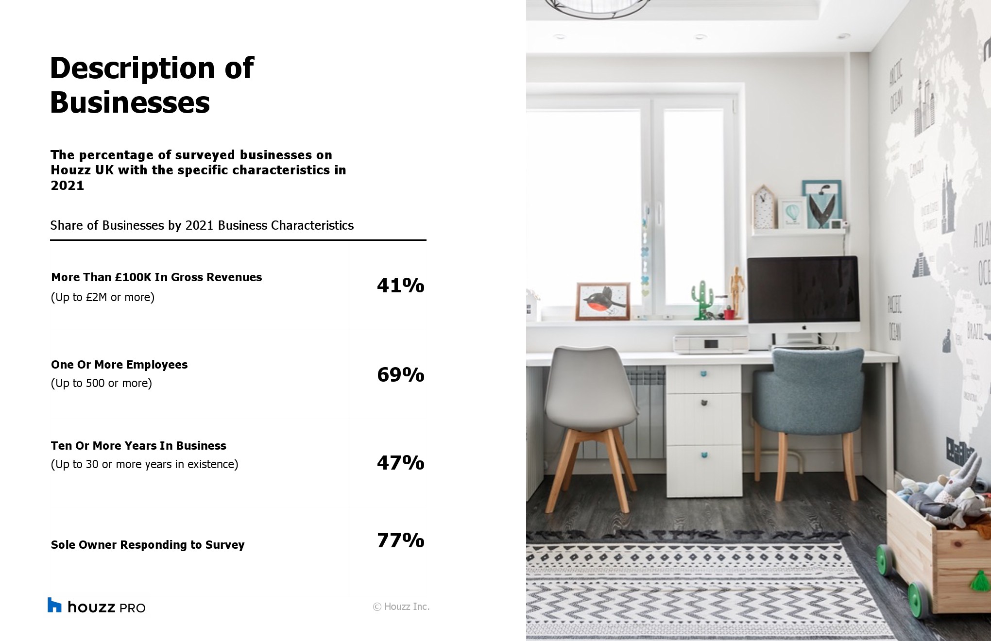 2022年2月21日到2022年3月9日,Houzz调查了英国建筑师/设计师、建造和安装、设计和建造、建筑与装修、装潢,以及园林绿化和户外等行业。主要发现包括: