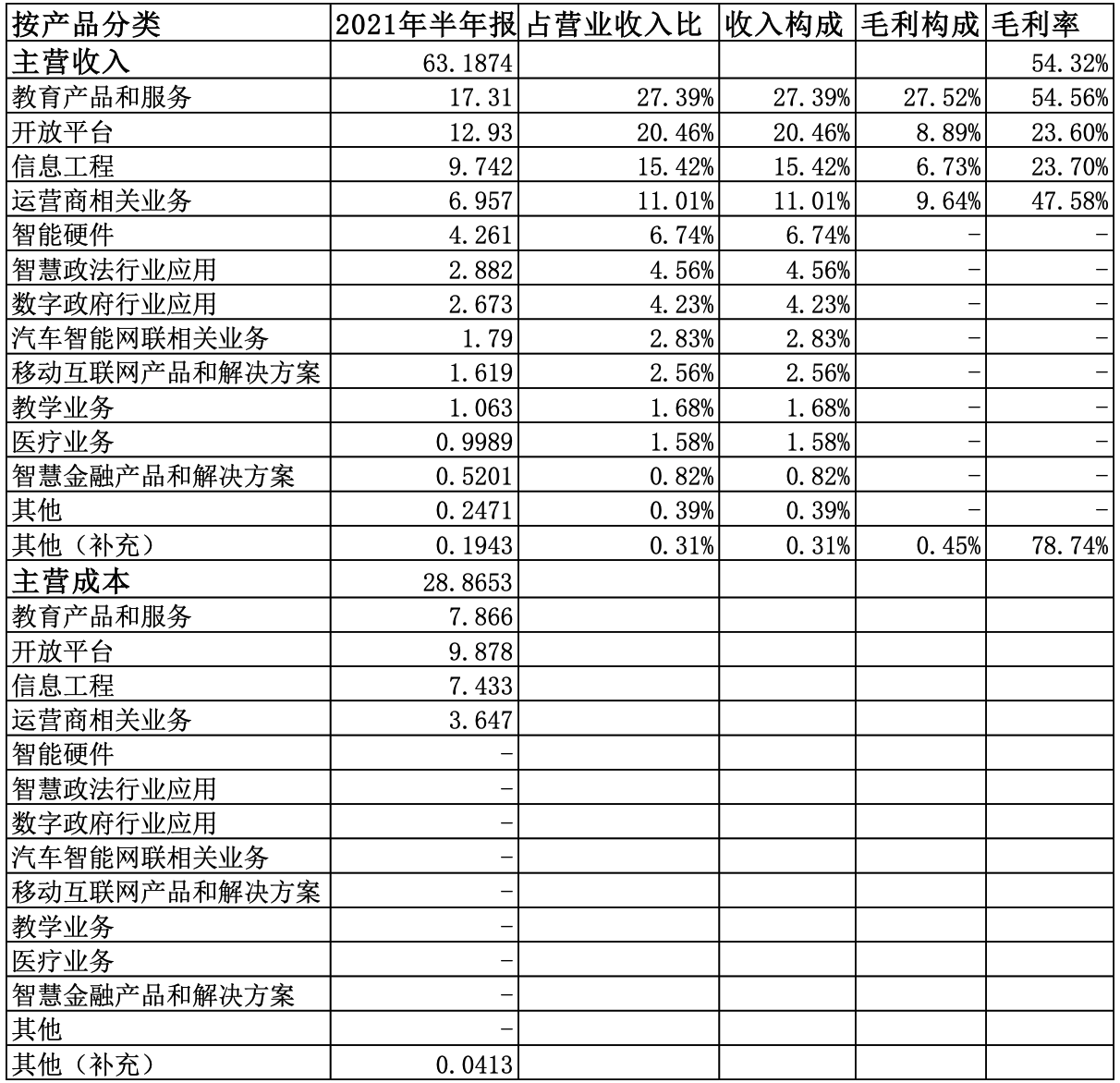 表 科大讯飞(002230.SZ)收入成本分析(单位:亿元)