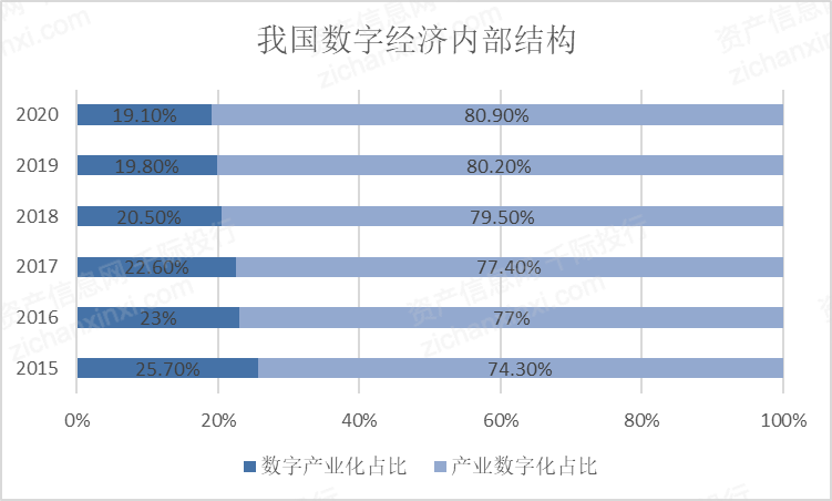 数字经济内部结构包括数字产业化和产业数字化两部分。一方面,数字产业化实力进一步增强,数字技术新业态层出不穷,一批大数据、云计算、人工智能企业创新发展,产业生产体系更加完备,正向全球产业链中高端跃进。另一方面,产业数字化深入发展获得新机遇,电子商务、平台经济、共享经济等数字化新模式接替涌现,服务业数字化升级前景广阔,工业互联网、智能制造等全面加速,工业数字化转型孕育广阔成长空间。