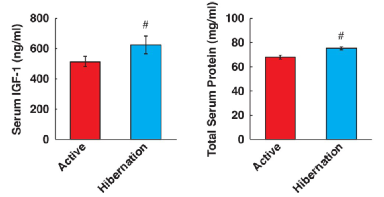 (图片来源:参考资料1)图4 夏季活跃期与冬眠期熊血清中IGF-1浓度和总蛋白含量