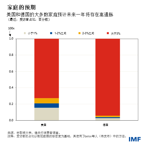 最近几个月,消费者和企业也日益担心通胀的上行风险。对于美国和德国,家庭调查显示:人们预计明年会出现高通胀,并认为未来五年通胀率远超目标的可能性很大。