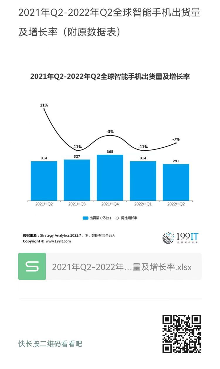 - Strategy Analytics:2021年Q2全球智能手机出货量同比增长11%,达到3.142亿部