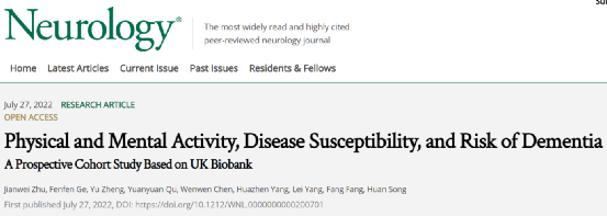 近日四川大学华西医院生物医学大数据中心宋欢团队在 Neurology 杂志发表研究论文Physical and Mental Activity, Disease Susceptibility, and Risk of Dementia。该研究发现经常锻炼身体、做家务和走亲访友等保持活跃和拥有良好社交的生活方式都有可能降低患痴呆症的风险!