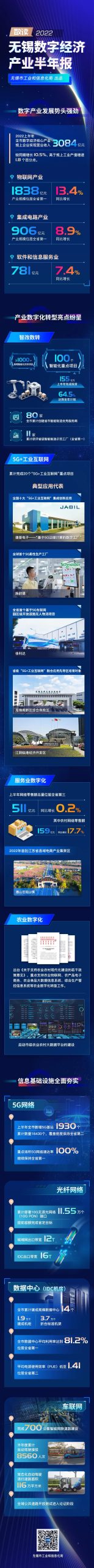 2022年上半年无锡数字经济产业数据 来源:无锡工信 更多阅读:United Nations:2024年数字经济报告(太平洋地区)2022长三角数字经济发展报告ASIA&CAICT:2023亚洲数字经济报告中国数字经济发展情况CIDEE:城市数字经济发展态势研究报告数字经济全景白皮书:Z世代用户洞察篇哈佛大学肯尼迪学院:数字鸿沟的经济后果和代际影响报告谷歌:2021年东南亚数字经济报告新疆数字经济发展研究报告 (2020)工信安全智库:2021上半年数字经济形势分析牛津经济研究院:Z世代在塑造数字经济中的作用CMF:数字经济时代的反垄断ITIF:中国在国际数字经济中的竞争力报告美国司法委员会:2020年美国网络市场竞争调查报告工信部:2025年8月末我国5G用户达11.54亿户,基站464.6万个