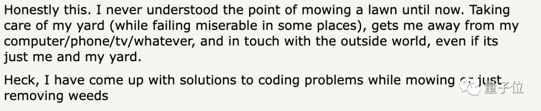 有人分享了自己独立思考的小故事:ta在修剪草坪时想出了解决编码问题的办法。