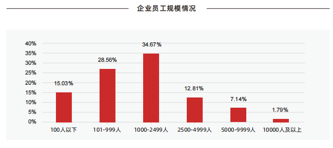 在本次调研中,卡思优派针对汽车行业的人力资源从业中进行问卷投放,累计 342 家企业参与调研。其中,京津冀、长三角、珠三角等中国经济发达地区调研对象占比超过 80%,企业人员规模 1000-2499 人的比例为 34.67%,2500 人以上规模的企业也都有分布。